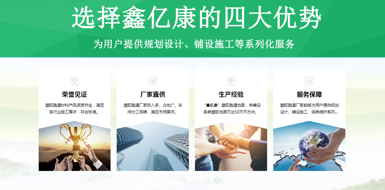 鑫億康(山東)體育產(chǎn)業(yè)發(fā)展有限公司是業(yè)內(nèi)一家塑膠跑道材料的生產(chǎn)企業(yè)。公司經(jīng)營范圍:塑膠跑道,全塑型塑膠跑道,混合型塑膠跑道,透氣型塑膠跑道,EPDM塑膠跑道廠家銷售及鋪設(shè);體育用品及器材銷售、安裝。  公司擁有專業(yè)的生產(chǎn)及研發(fā)團隊和專業(yè)的銷售管理精英團隊,一直致力于產(chǎn)品的開發(fā)和業(yè)務(wù)的拓展,產(chǎn)品暢銷全國各個省市,遠銷東南亞地區(qū)、歐美等國家。卓越的品質(zhì),周到細致的服務(wù),使我們?nèi)〉脼楸姸嗌钚^(qū)、市政單位、物業(yè)公司、學(xué)校、工廠等單位提供優(yōu)質(zhì)產(chǎn)品的機會,產(chǎn)品色澤鮮艷,美觀大方,品種齊全,材質(zhì)多樣化,并贏得了良好口碑,多次獲得好評和表彰。  企業(yè)性質(zhì):涉足建筑業(yè),具有多項資質(zhì)證書,是集研發(fā)、項目管理、設(shè)計、檢測、加固施工、咨詢服務(wù)于一體的綜合性科技型企業(yè),通過為業(yè)主提供品質(zhì)卓越、專業(yè)誠信的服務(wù),來贏得信譽并滿足社會要求。  服務(wù)內(nèi)容:長期致力于建筑領(lǐng)域中發(fā)展,從項目的規(guī)劃到操作運行,為業(yè)主提供從工程項目管理、工程結(jié)構(gòu)設(shè)計、房屋質(zhì)量檢測、幕墻檢測、司法鑒定、抗震鑒定、工程檢測、工程測繪、特種工程加固、綜合改造加固、工程監(jiān)理等系統(tǒng)而專業(yè)化的服務(wù),包括項目生命周期中的每一個步驟。  管理平臺:致力于管理的規(guī)范化和精細化,為業(yè)主提供性價比更高的服務(wù)。公司按照國際ISO9000質(zhì)量標準和國家MA計量標準實事工程...